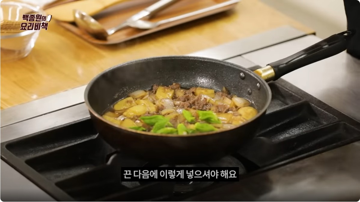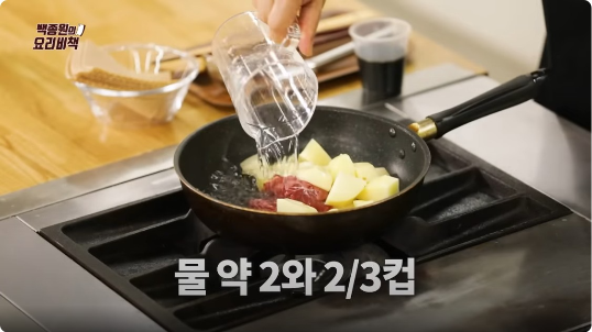 ※ 완전히 으깨지는 감자조림을 원하면 물을 추가한 후 졸이는 시간을 더 늘린다.