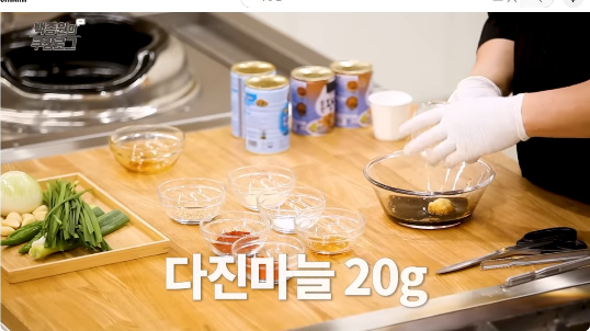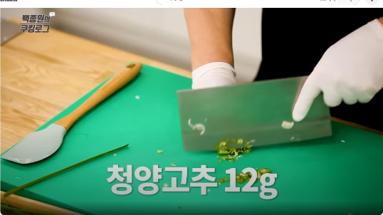 3. 청양고추 12g을 다져서 넣고, 편마늘 조금과 부추 20g을 송송 썰어 넣어준다.