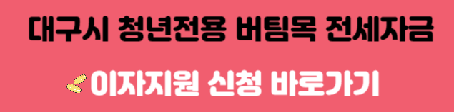 대구시에서는 지역 내에 거주하고, 23년 1월 1일 이후 주택도시기금 청년전용 버팀목 전세자금 대출 신규 이용자에게 대출이자를 지원해 준다고 합니다. 지원조건과 내용 정리해 드릴 테니 조건에 맞으시는 분들은 혜택 꼭 받아보시기 바랍니다.