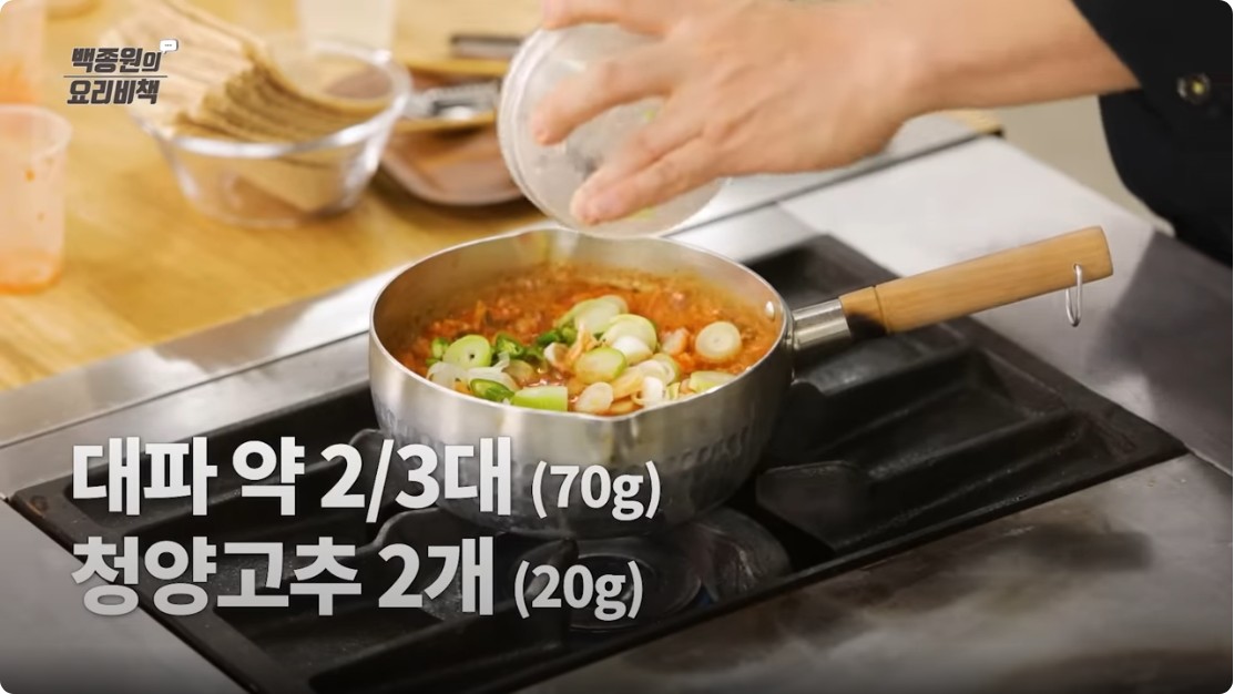 김치찌개와 고기는 오래 끓일수록 맛있고, 대파와 청양고추를 최대한 안 넣고 충분히 끓인 후 마지막에 넣어주는 게 좋다.