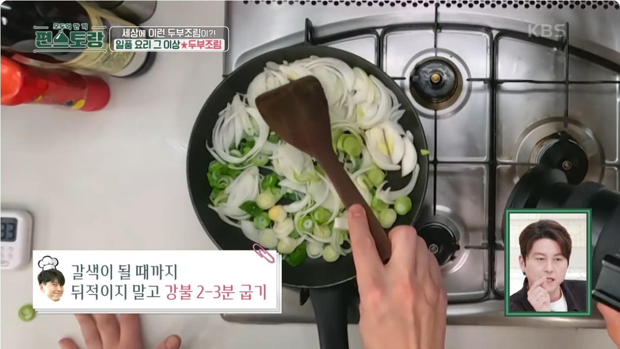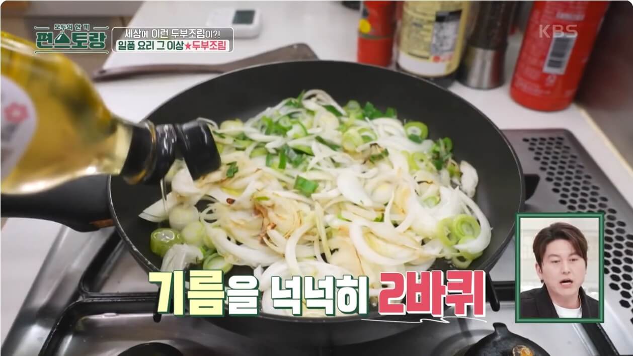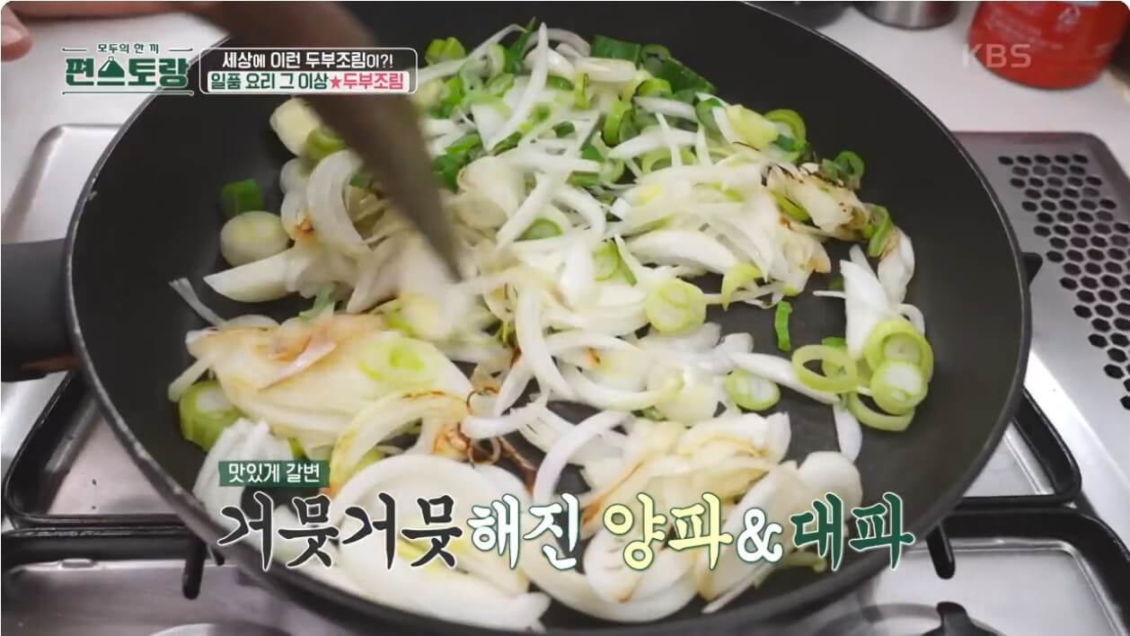1. 예열된 팬에 썰어둔 양파, 대파를 넣어 강불에 구워준다.