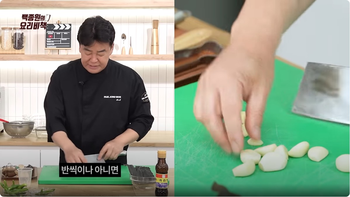 3. 마늘은 꼭지를 제거하고, 편 썰거나 큼직하게 반으로 썰어준다.