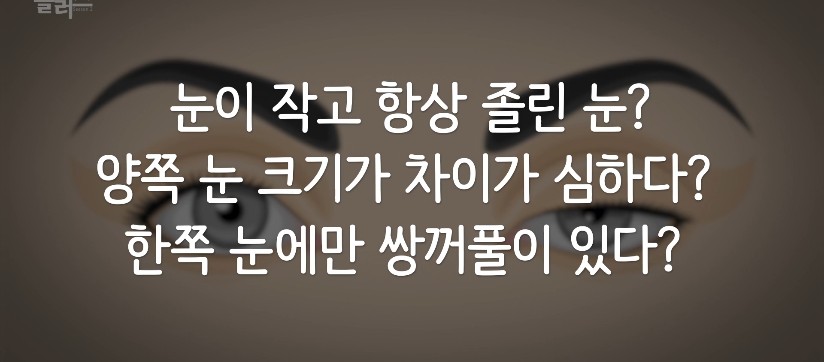 2. 양쪽 눈 크기가 차이가 심하고 한쪽에만 쌍꺼풀이 있는 경우에 안검하수를 의심해보아야 한다.