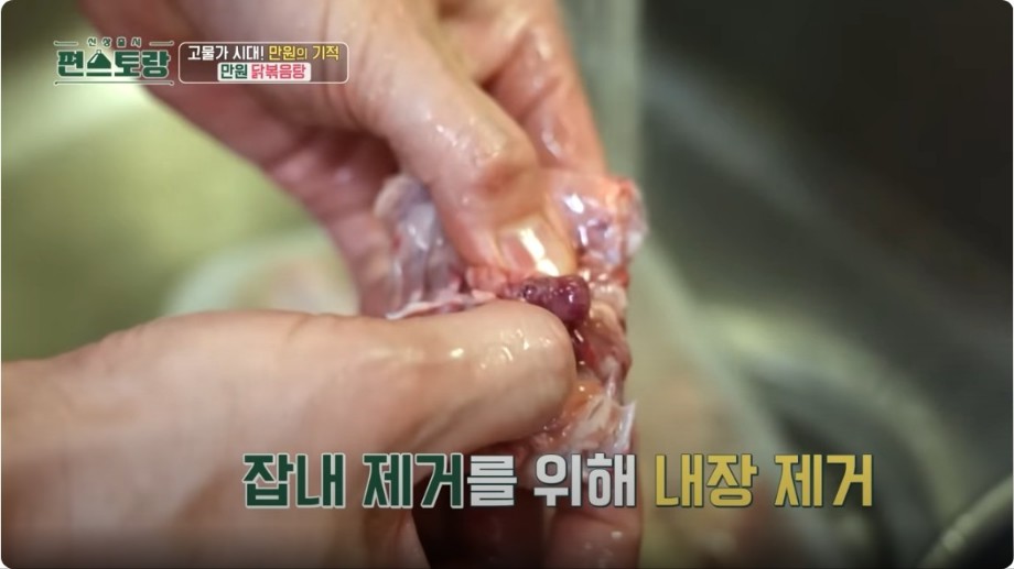 1. 닭볶음탕용 닭은 흐르는 물에 씻으면서 내장을 떼내고 깨끗이 헹군다.