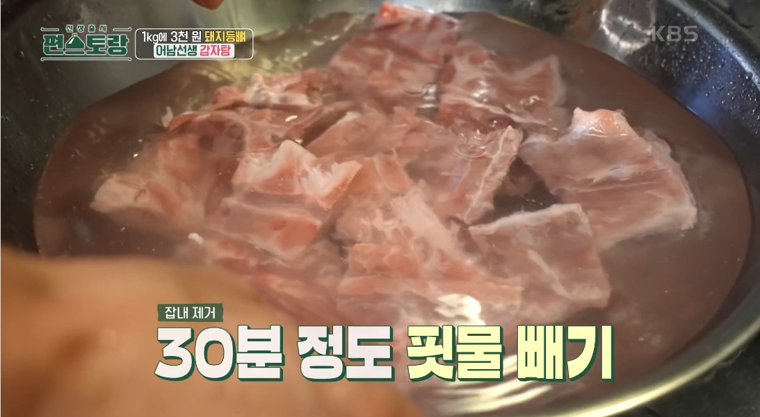 등뼈 1kg에 3천원으로 맛있는 감자탕 만드는 어남선생 류수영만의 레시피 영상으로 보면서 따라 하실 수도 있습니다.