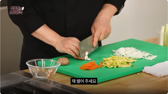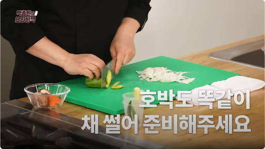 1. 양파, 애호박, 당근, 표고버섯은 채 썰어 준비한다.