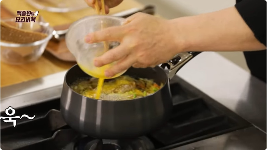 5. 계란 1개를 풀어 두르듯이 부어주고 불을 끈다.