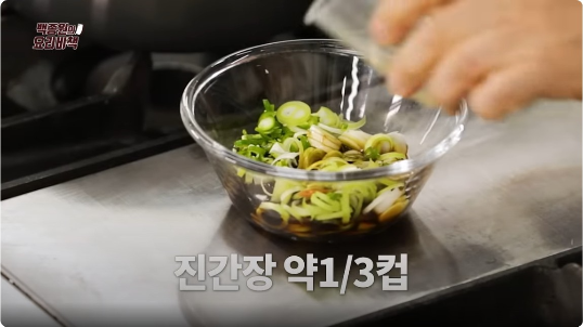 진간장 약 1/3컵, 대파 1/2대, 청양고추 2개, 간 마늘 1/2큰술, 굵은 고춧가루 1큰술, 깨소금 1큰술, 황설탕 1/3큰술, 참기름
