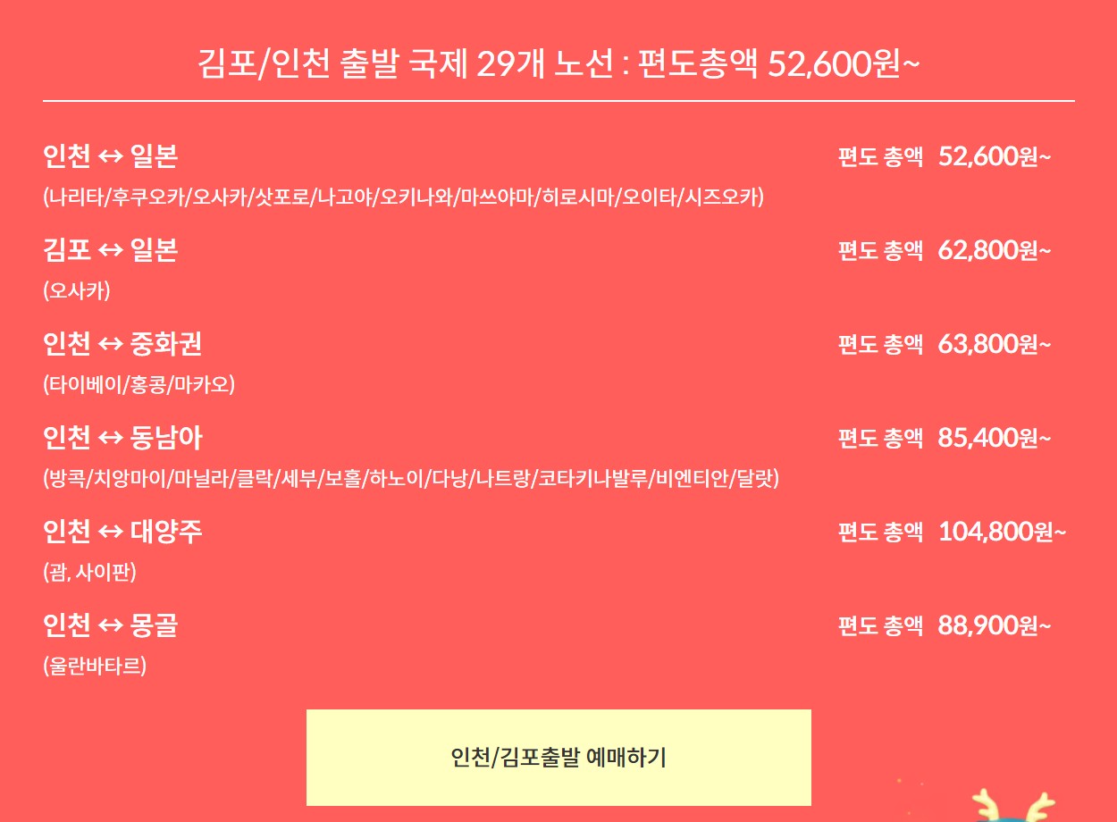 편도 총액 기준으로 국내선 16,900원부터 판매한다고 하니, 여행 준비중이라면 빠르게 예매하시기 바랍니다.