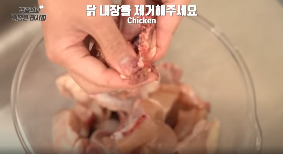 1. 닭의 내장을 제거 후, 흐르는 물에 씻어 물기를 제거하여 준비한다.