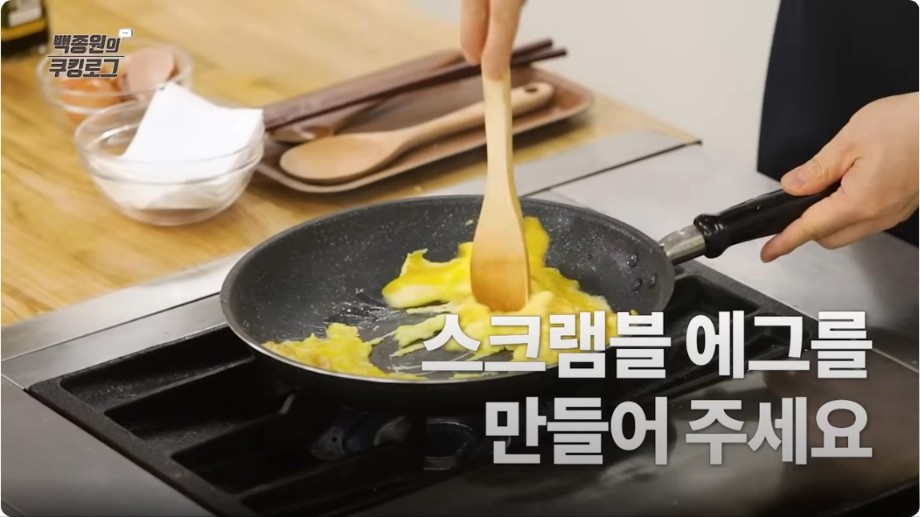 3. 팬에 식용유를 두르고 스크램블 에그를 만든다.