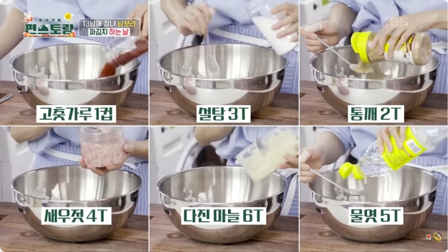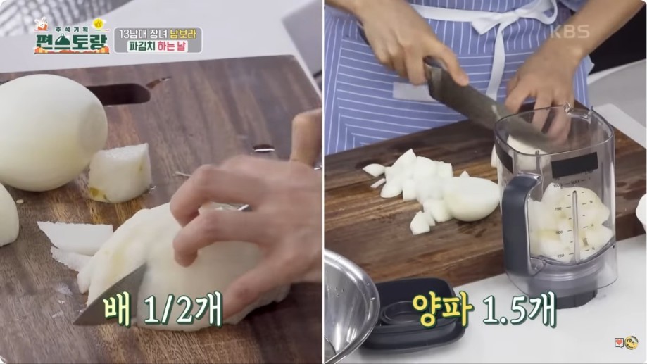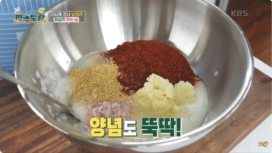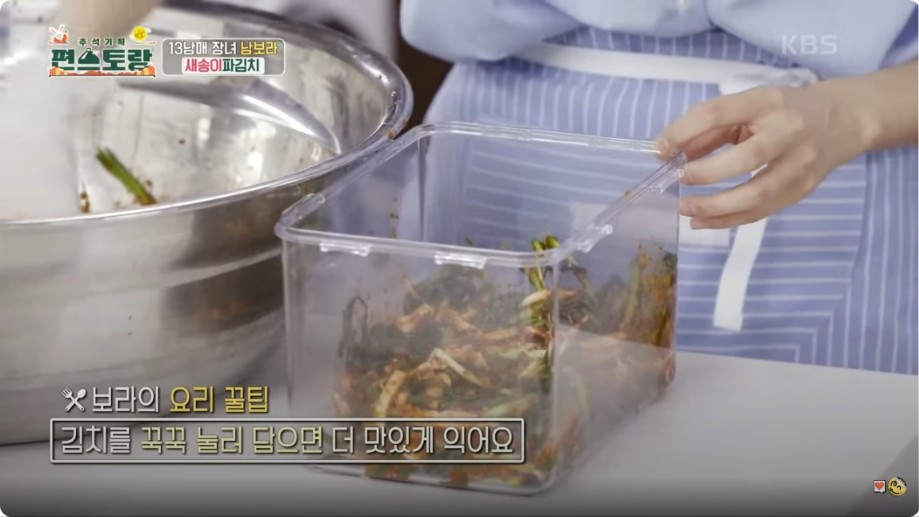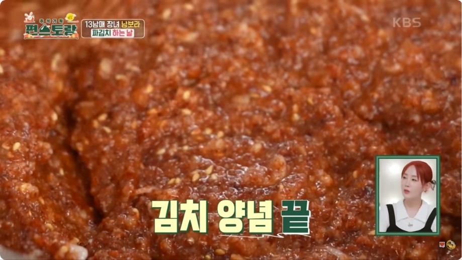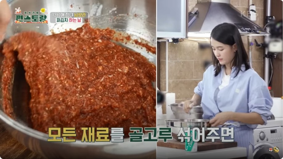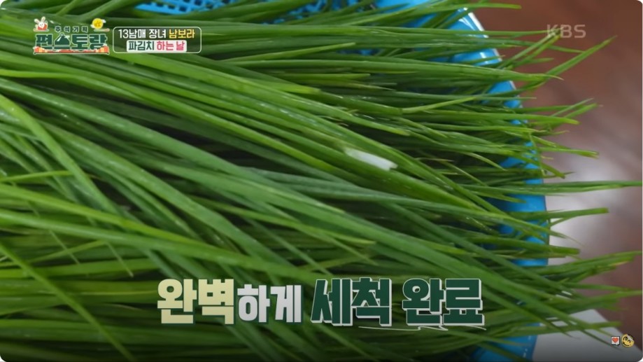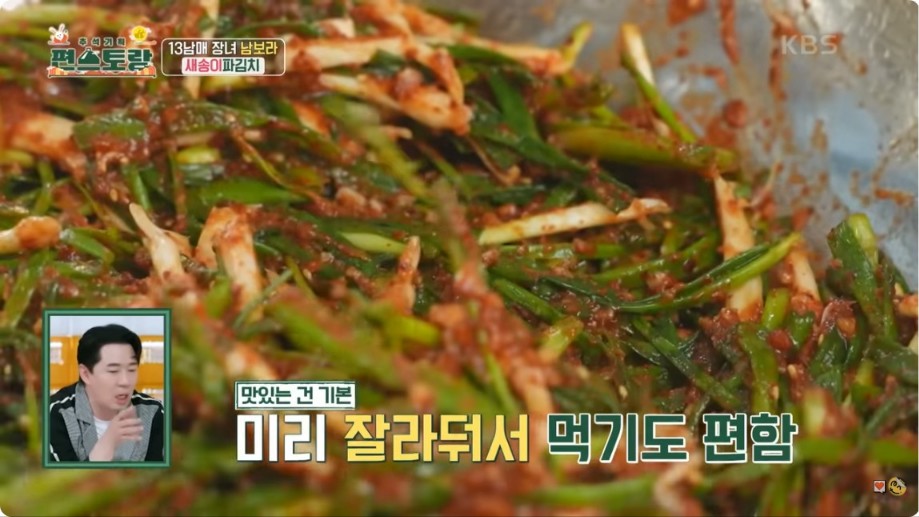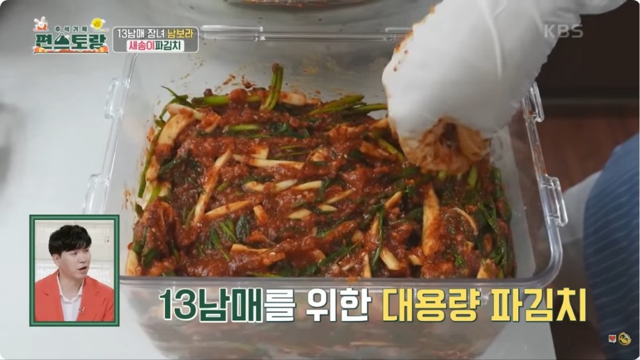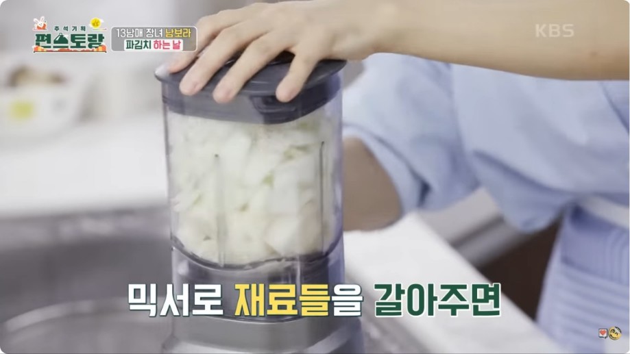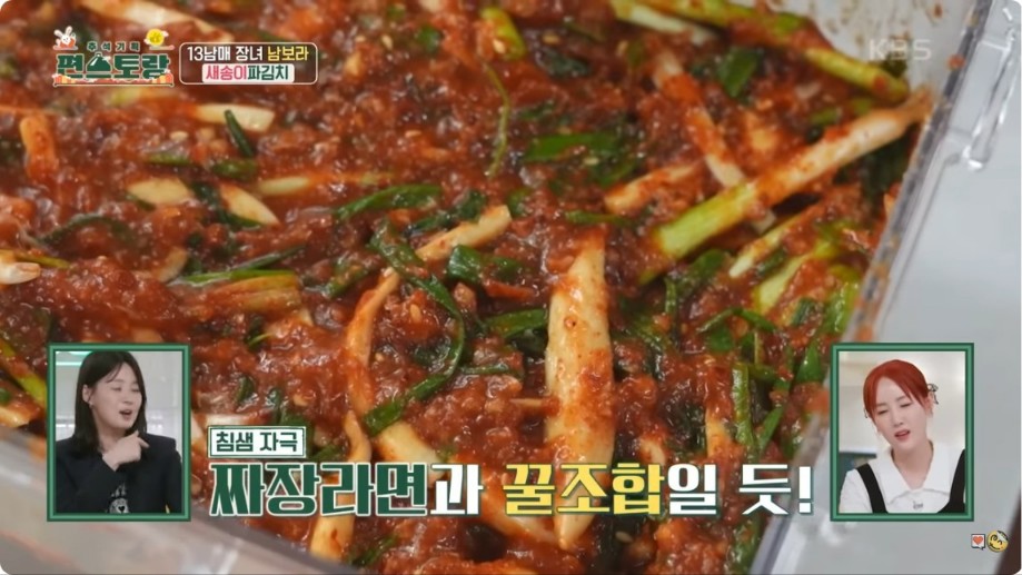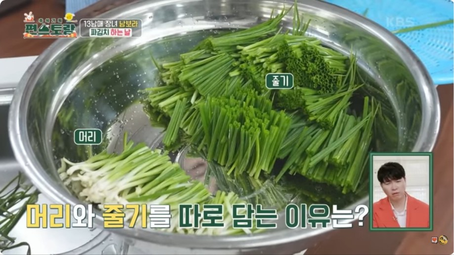 새송이 버섯의 식감이 더해져 더 맛있는 편스토랑 남보라 새송이 파김치 레시피입니다.