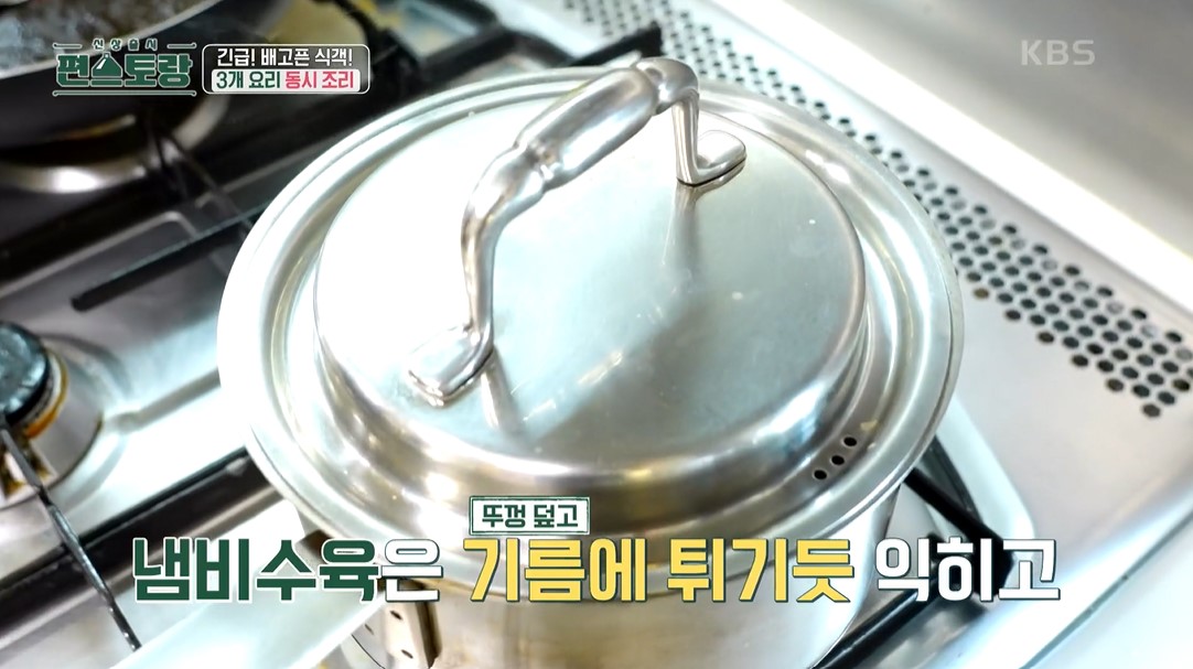 라면 냄비 하나로 만드는 편스토랑 류수영의 마늘 수육 레시피입니다.