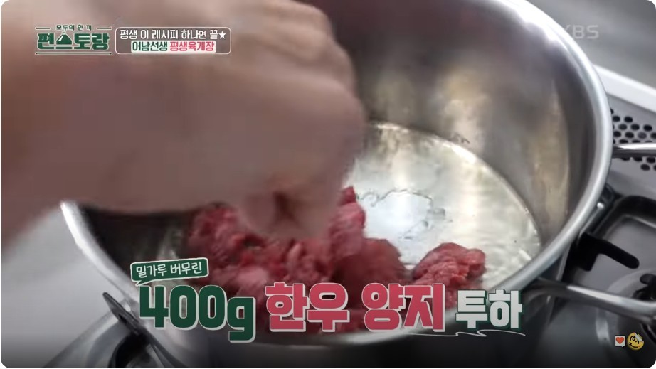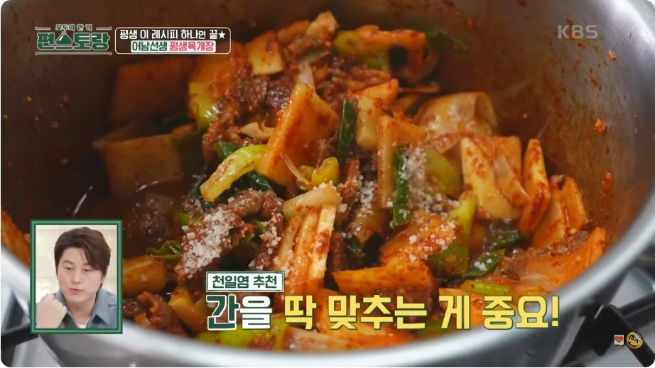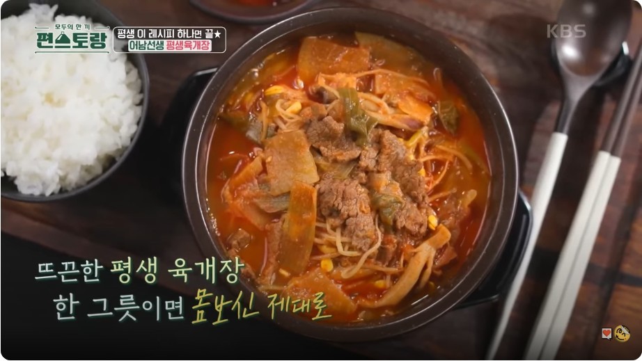 4가지 재료로 빠르고 간편하게 끓일 수 있는 편스토랑 어남선생 평생 육개장 레시피로 육개장 맛있게 끓이는 법 정리해 드리겠습니다.
