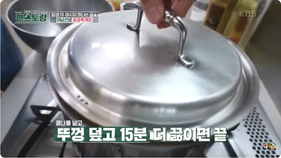 5. 20분이 지나면 콩나물을 넣고 뚜껑을 닫아 15분 더 끓여준다.