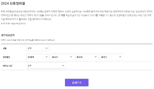 2024 신토정비결 무료보기 > 사주정보 입력 > 무료 운세 보기